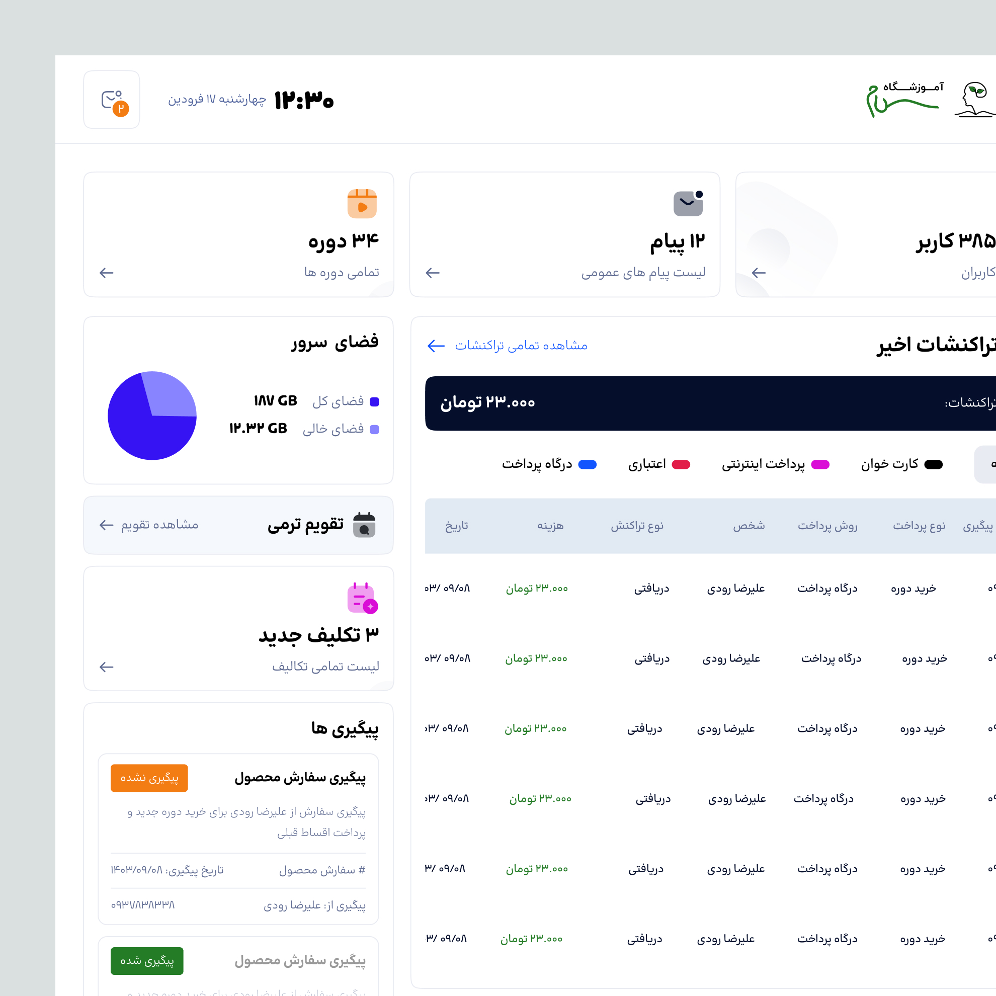 سایت و پنل های وبسایت آرمان