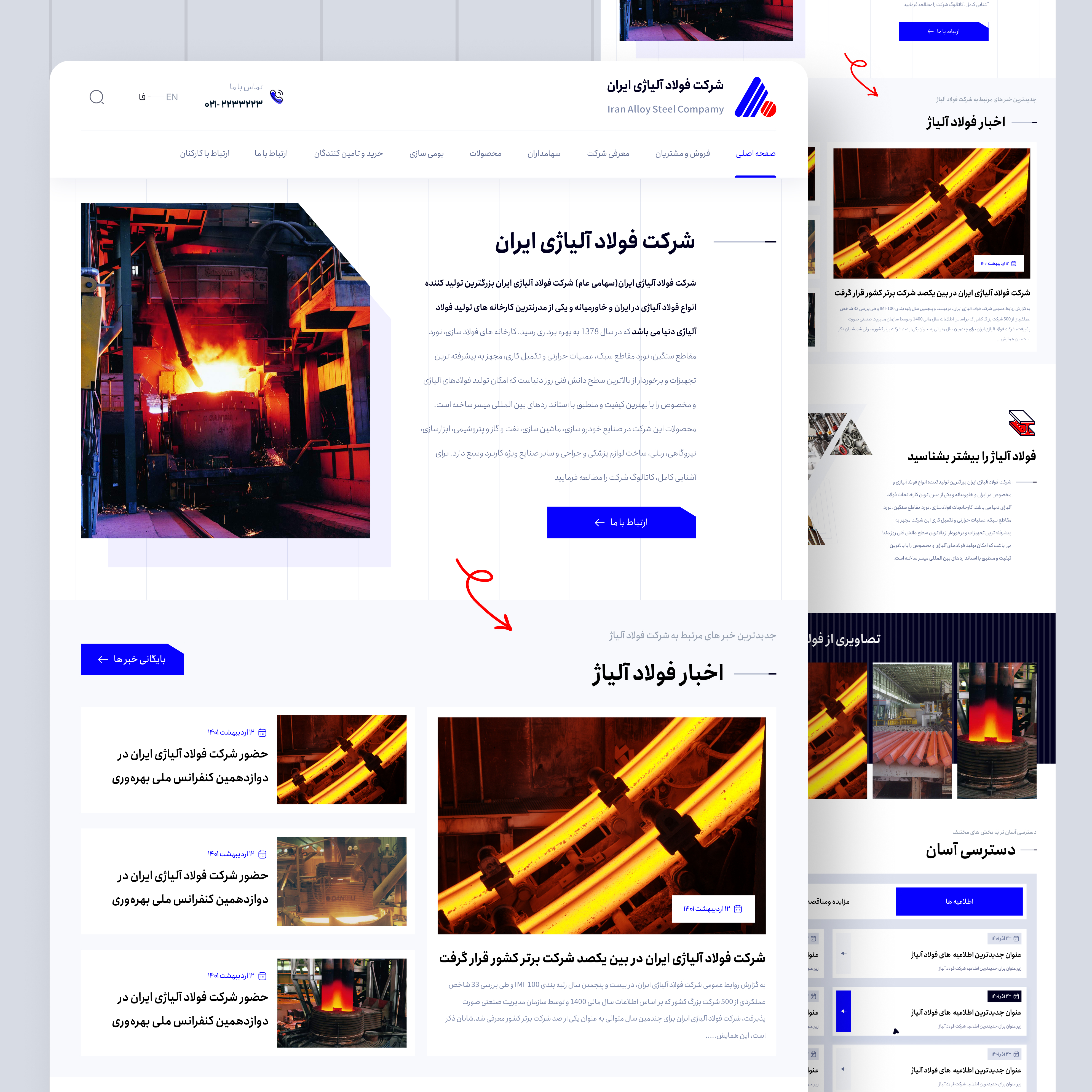 طراحی رابط کاربری و تجربه کاربری وبسایت شرکت فولاد آلیاژ ایران